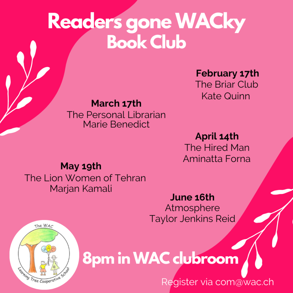 Anyone who has read the book is welcome to join for a discussion over a cup of tea/coffee and a slice of cake. For any questions, please contact Ieva at com@wac.ch